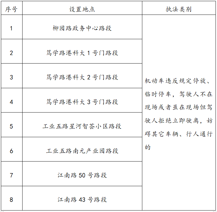 该批新增的设备将于2月18日开始投入使用,交警部门将依法对有交通违法行为的车辆进行拍摄取证并予以执法,请广大驾驶员守法出行、安全驾驶。